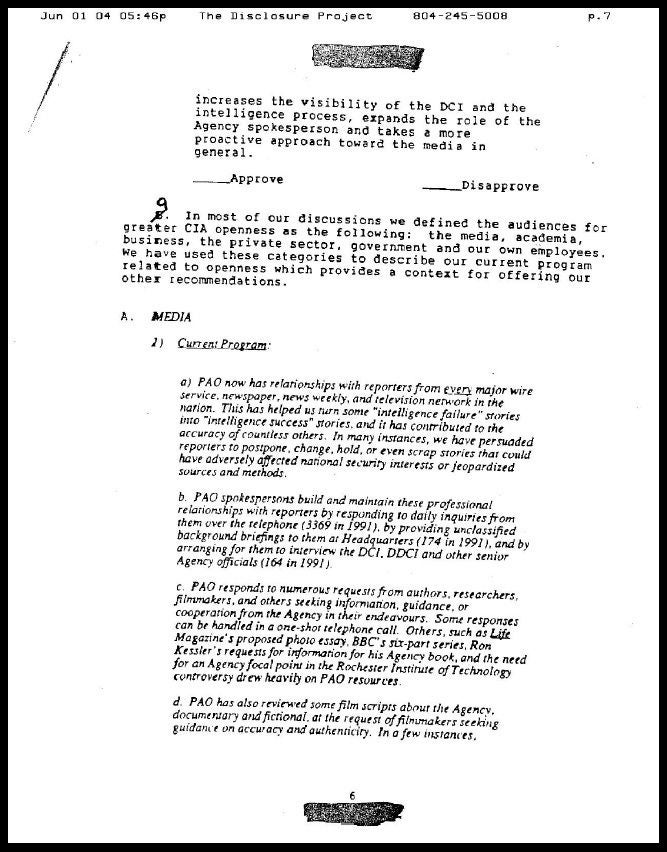 "PAO [Public Affairs Office] now has relationships with reporters from every major wire service, newspaper, news weekly, and television network in the nation. This has helped us turn some intelligence failure stories into intelligence success stories, and it has contributed to the accuracy of countless others. In many instances, we have persuaded reporters to postpone, change, hold, or even scrap stories that could have adversely affected national security interests or jeopardized sources and methods."